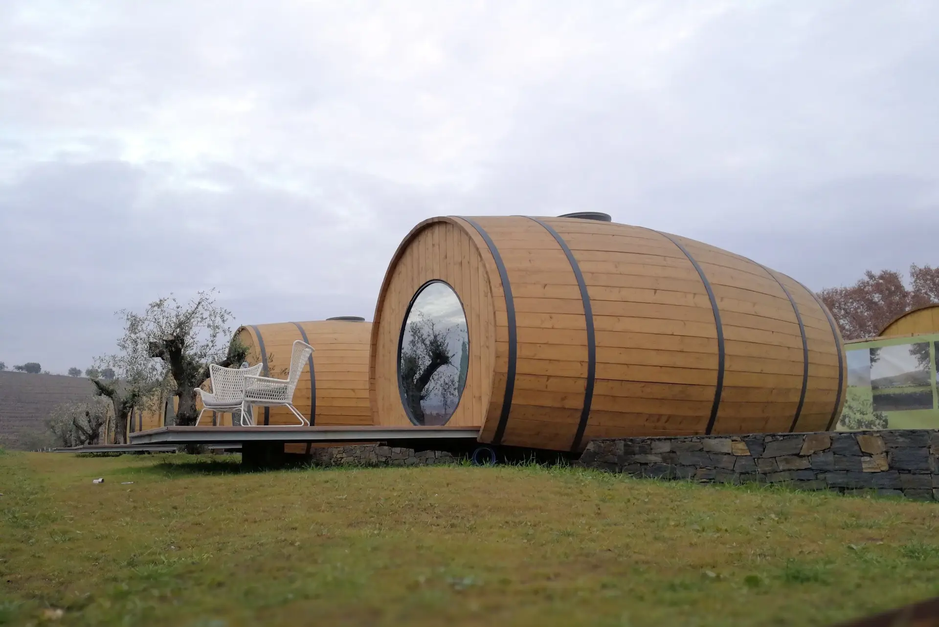 Imagine um pipo de vinho, em madeira, tão grande que lá dentro podem caber duas ou mais pessoas. Imagine também que além de se poder movimentar dentro da enorme barrica, que pode lá dormir, com vista para o rio Douro, e até aproveitar o céu estrelado enquanto está deitado na cama, graças a uma discreta e panorâmica janela no topo.