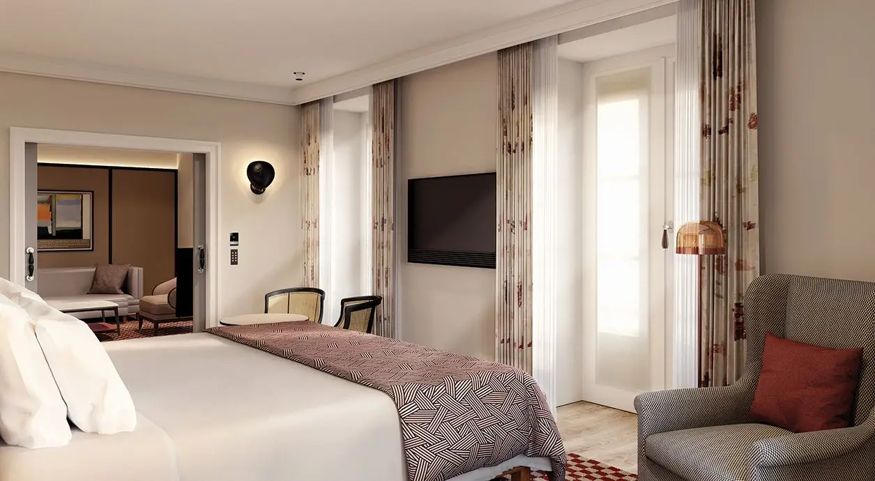 “Lisboa está prestes a ter um quarteirão inteiramente novo. O número 2 da Praça de Luís de Camões vai estender-se pela Rua do Alecrim e abrir para a Praça Barão de Quintela passando pela Rua das Flores. O Bairro Alto Hotel terá quatro frentes e uma remodelação de fundo, mantendo a traça original e o espírito que o tornou uma referência.” É desta forma que se anuncia a reabertura, em maio, do Bairro Alto Hotel, cujo projeto de remodelação e ampliação tem a assinatura do premiado arquiteto Eduardo Souto Moura. A intervenção, em edifícios pombalinos, não foi fácil, como reconhece o próprio Souto de Moura: “As regras são muito restritas e estão definidas. Os pés direitos são mínimos porque se aumentarmos perdemos um piso e, num piso, perdem-se 13 quartos. Havia 55, eliminei 7, faço 39, ficam 87.” Ou seja, com esta remodelação e “anexação” do edifício contíguo (onde estava o quartel dos Sapadores Bombeiros), o novo Bairro Alto Hotel vai “mais do que duplicar” a oferta de quartos, incluindo duas suítes de assinatura, no último piso. Mas, esta é apenas uma (grande) parte das mudanças.