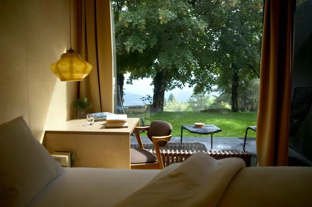 No primeiro hotel de cinco estrelas na Serra da Estrela, a vista sobre o Vale Glaciar do Zêzere, a Serra e a vila de Manteigas é de cortar a respiração. O crepitar da lareira alia-se a apontamentos de design contemporâneos, onde o burel típico se conjuga com o design de Maria Keil. A Casa de São Lourenço - Burel Panorama Hotel nasce de uma antiga pousada, desenhada há 70 anos pelo arquiteto Rogério de Azevedo. A 1200 metros de altitude, oferece 17 quartos e 4 suítes, todos com vista panorâmica, todos diferentes, com instalações de arte em lã de ovelha bordaleira e poesia bordada sobre o burel, numa clara homenagem ao design português. O Restaurante de São Lourenço aposta na diversidade da cozinha tradicional portuguesa enquanto no Spa de Montanha se utilizam óleos de ervas e água da Serra. A piscina interior comunica com a exterior, com água aquecida de nascente. Quarto duplo desde €175.