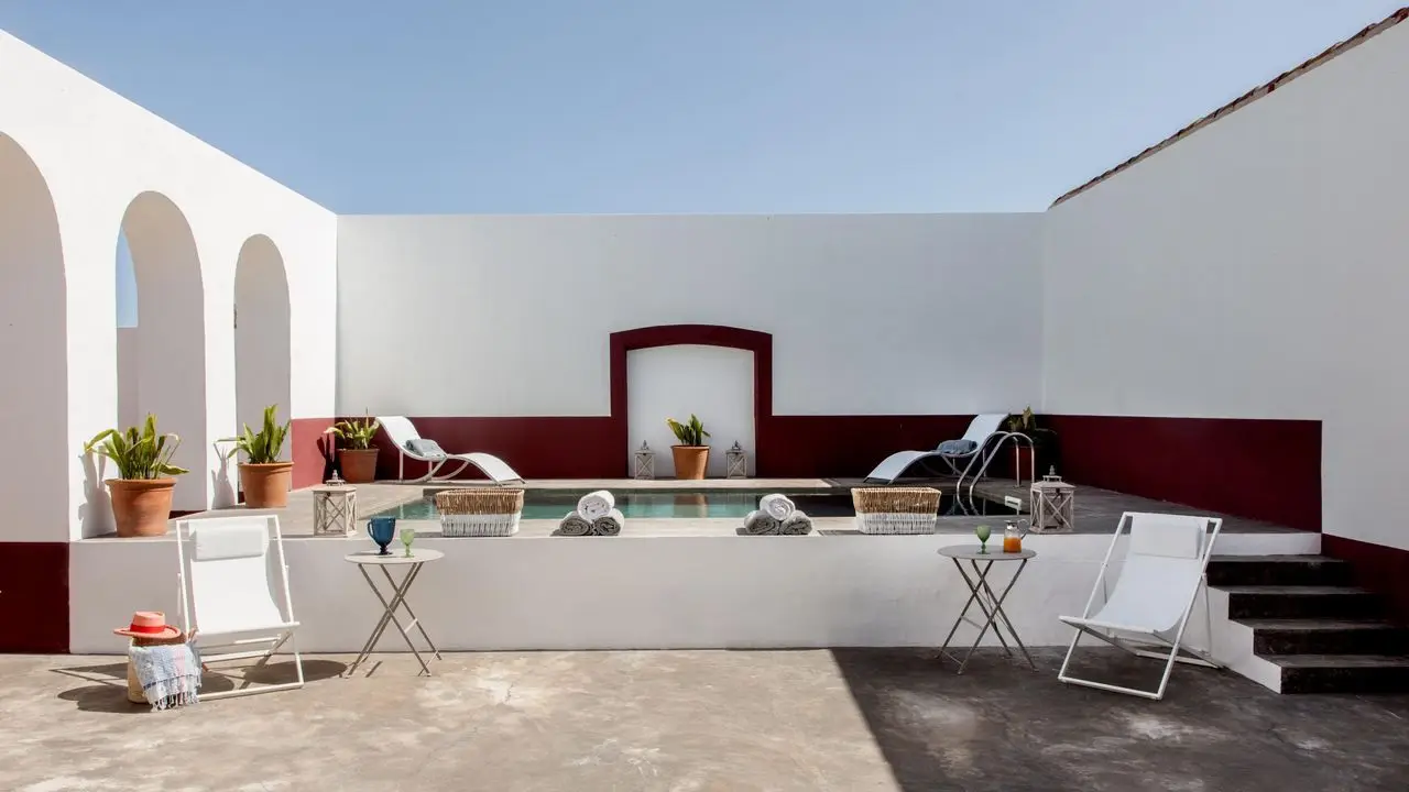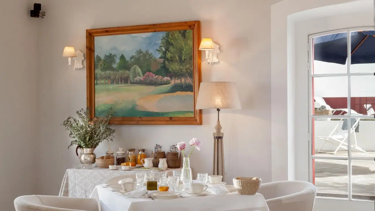 “Onde está, agora, o salão, era um celeiro, e a piscina era, antes, um palheiro”, explica Francisco del Cuvillo, referindo-se ao edifício situado do lado esquerdo do pátio. A fileira de arcos do primeiro terraço, com a piscina, tornam este espaço mais privado, seguido da ampla sala dos pequenos-almoços buffet dos hóspedes, privilegiada em dias soalheiros. Os almoços e o jantares, elaborados de acordo com os sabores da cozinha típica alentejana, também são servidos mediante reserva feita com um dia de antecedência.