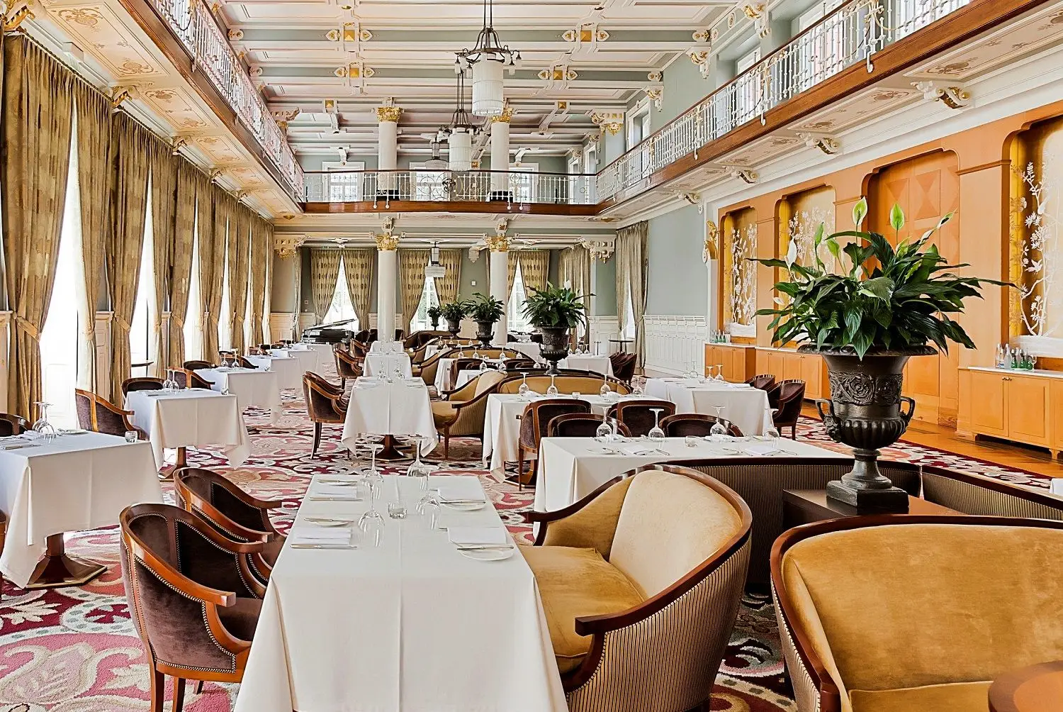 hotel de sonho também nos 70 quartos (a partir de €190), todos em estilo Belle Époque, com candelabros, estatuetas e obras de arte que apelam a uma viagem no tempo. Impossível deixar de referir os impressionantes e luxuriantes jardins como ponto de atração, bem como o excelente Spa, da autoria do arquiteto Siza Vieira, ou o campo de golfe, da responsabilidade de Philip Mackenzie Ross. O restaurante tem a consultadoria do premiado chef Vítor Matos.