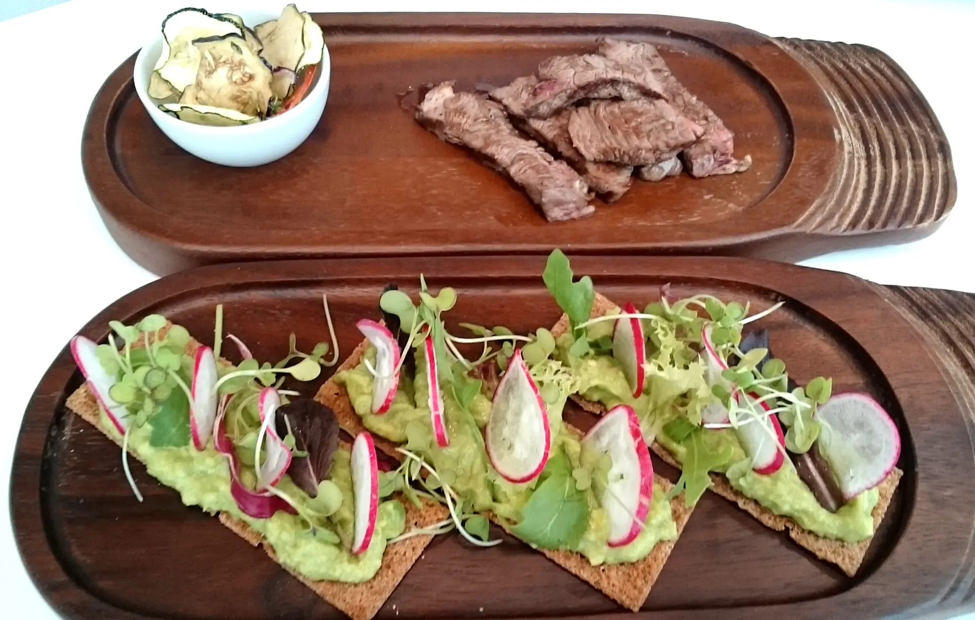 Pela manhã, uma das opções é um pequeno-almoço glúten free, composto por cereais, frutos secos, ervas, salmão e outros ingredientes ligeiros em gorduras. Experimente também as excelentes Tartines de Húmus (€9), Veggie Club (€10), muito saborosa, graças aos cogumelos pleurotos grelhados e ao tomate seco, e a surpreendente Tofu grelhado (€10), com beringela e pepino, envolvido num wrap de quinoa e semente de chia. E, não tenha pressa, porque no restaurante Zest, o pequeno-almoço é servido durante todo o dia! Ou seja, pode pedir desde uma “Cesta da manhã”, com pães de farinhas orgânicas, doces do Freixo do Vale e mel serrano (€6 ou €9, caso opte por produtos sem glúten), até Panquecas de trigo-sarraceno, com iogurte grego, bagas e flor de laranjeira (€13), sem esquecer o Scramble de salmão, com torradas e cebolinha assada (€19).