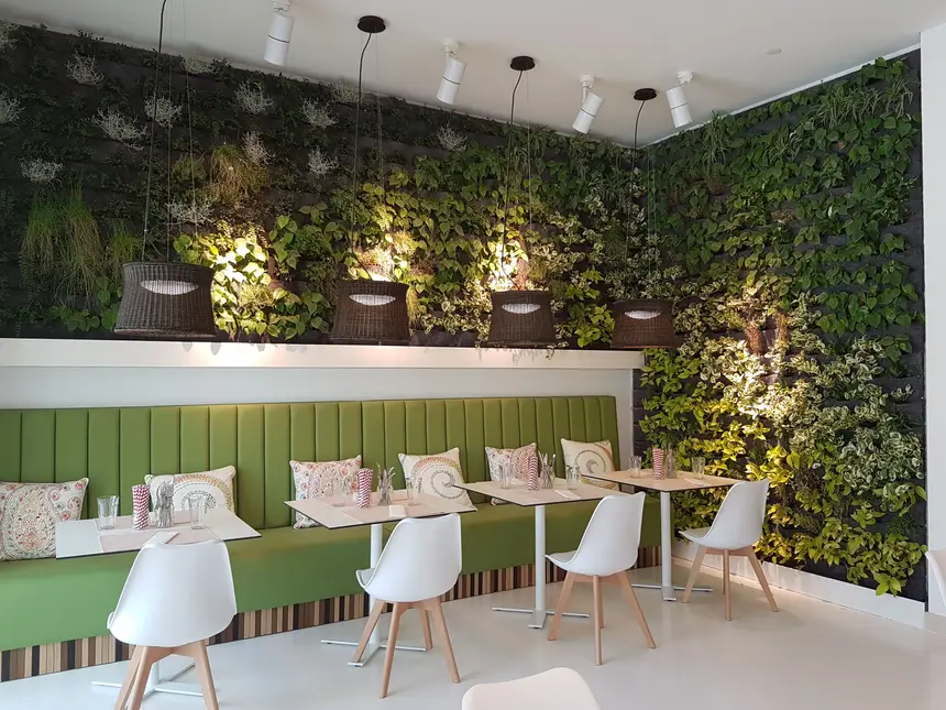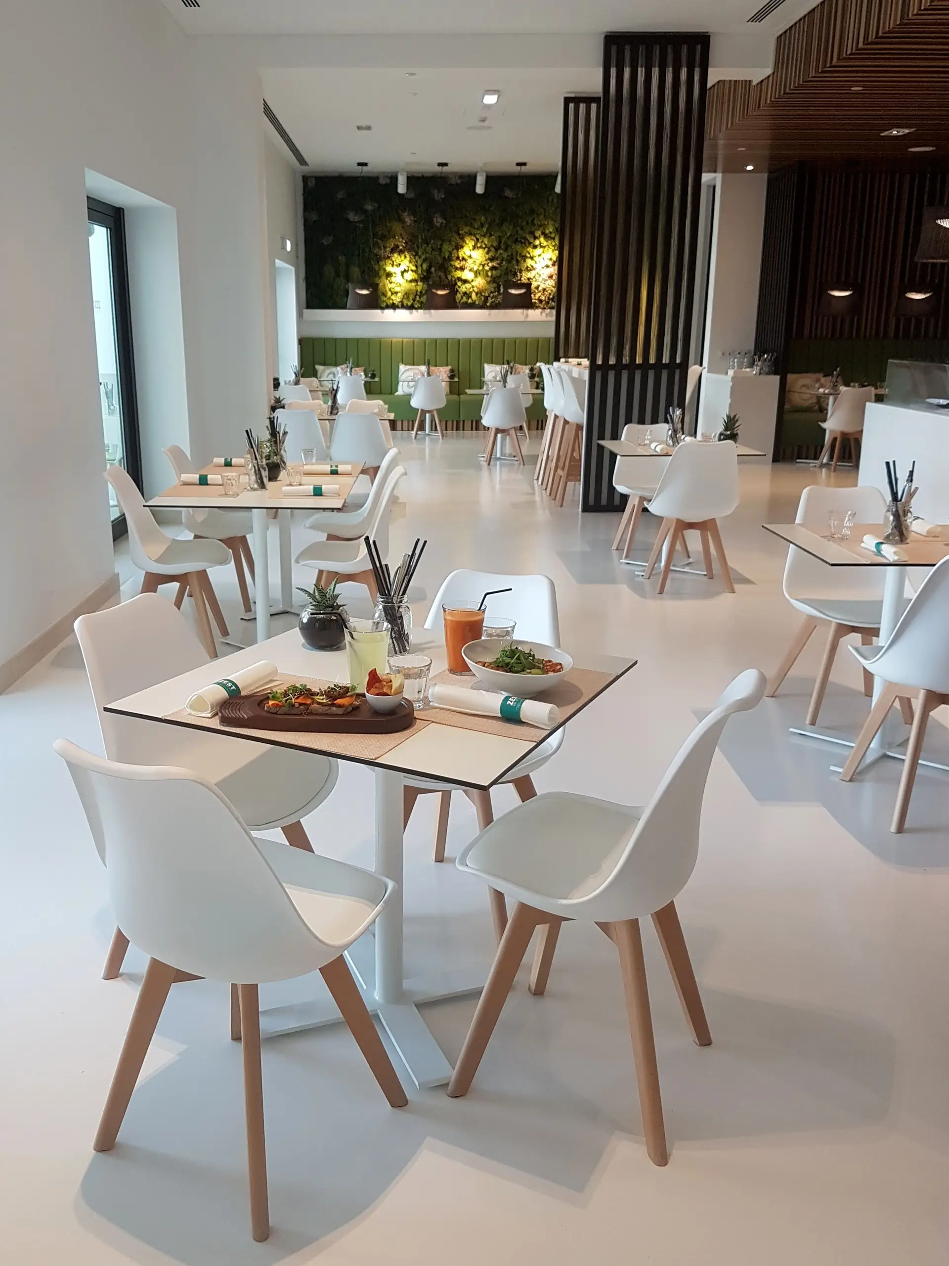 Do lado de fora é impossível perceber a beleza do espaço, em Albufeira. O fator maior de atração do Restaurante Zest – Mind, Body and Sou, localizdo no Pine Cliffs Resort, a Luxury Collection Resort – não contando com a oferta de comidas e bebidas – é a parede decorada com plantas naturais, de uma verde que dá vontade de tocar, só para suspirar com a confirmação de que são mesmo verdadeiras… Respira-se fundo, de novo, por causa da hesitação: sentar e apreciar a ementa, ir até ao bar de sumos e personalizar um mix que é feito no momento ou ir até à zona de Grab & Go, para organizar, mentalmente, o que levar para praia.