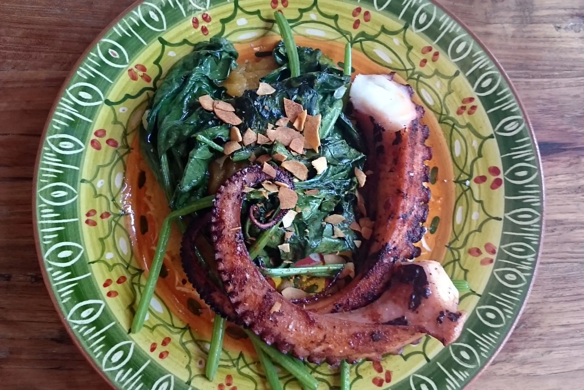 Com a certeza de que a perfeição só se atinge com o aumento da cadência de serviço, o Celeiro é ainda um restaurante a dar os primeiros passos. Mas, o caminho está aberto e a prova foi dada ao almoço (na semana de abertura), com o chefe Bruno Caseiro a mostrar todo o seu potencial com três petiscos, que também podem ser entradas, de gabarito: Pastéis de massa tenra (€9), Croquetes de orelha de coentrada (€9) e Peixinhos da horta (€8), em tiras fininhas, de polme e fritura perfeitos, e com um viciante caldo à Bulhão Pato no fundo do prato. Uma sugestão “importada” da londrina Taberna do Mercado e que, já é, um dos grandes sucessos do restaurante. Seguem-se, na carta, ainda no capítulo das entradas, a recreação de um clássico de verão, aqui adaptado para Salada de milho e feijão-frade (€8) e onde não faltam pequenas fatias de pão alentejano, e na secção das sopas, uma suave e saborosa Canja de choco e lingueirão (€14), que no dia da visita, teve uma alteração, que em nada comprometeu, com as amêijoas a substituíram a falta (no mercado) do lingueirão.