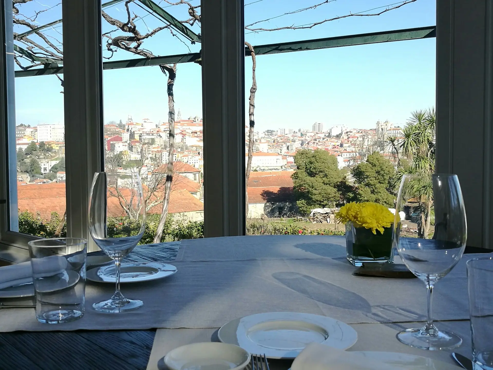 Além da dimensão algo “mística” associada à produção e envelhecimento do vinho do Porto nestas caves, que dão enquadramento e conteúdo ao Vinum (preço médio de €40 a €50), este restaurante vira-se para o Douro a partir da encosta gaiense, e não mais larga de vista essa paisagem deslumbrante. Incita a demoradas contemplações antes, durante ou após as refeições.