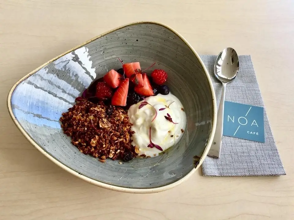 Abriu, de forma discreta, no final de março, no Vilar do Golf, em pleno resort da Quinta do Lago, no Algarve. Se é verdade que o golfe faz movimentar turistas ao longo de todo o ano, também é verdade que é nos meses quentes que este resort atinge a sua plenitude no que a veraneantes diz respeito. Foi a pensar neste público, e mais ainda naqueles que procuram uma refeição leve e saudável, mas acima de tudo, para quem não ter horários rígidos quando está a usufruir de uns dias de férias, que nasceu o NOA Café, com o conceito Bunch All Day, porque a ideia é essa: nada de correrias para o pequeno-almoço, porque a primeira refeição do dia até pode ser um ser um lanche durante a tarde, já que o espaço só fecha às 18h00. Independentemente da hora, conte sempre com produtos frescos e de época (o restaurante trabalha com produtores locais), pratos leves e saudáveis, que compõem um “menu moderno e com notória influência londrina, mas mantendo o estilo caseiro”, explica Nuno Gonçalves, responsável pelo Grupo NOA, que fez questão de trazer de Londres para a Quinta do Lago, uma cozinheira portuguesa.
