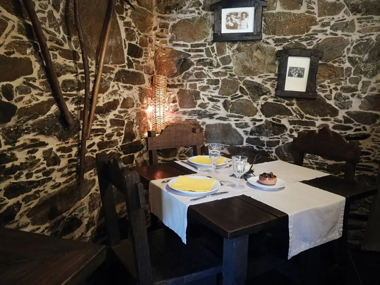 Sempre que o frio aperta lá fora, o calor da lareira ganha ainda mais encanto neste restaurante onde a tradição está por todo o lado, como a pedra e as madeiras e, claro, no que chega à mesa. Nos dias frios, fecha-se a porta do Sabores da Aldeia para que o calor da lareira possa dar conforto à sala rústica. Por estar aberto apenas ao fim de semana, o ideal é reservar e encomendar os pratos regionais (para duas pessoas) preparados por Mário Meira, com especial destaque para o cabrito assado e para o entrecosto no forno a lenha. Outros imperdíveis, com presença constante na lista, são as pataniscas, a alheira de caça e a chanfana. O talasnico é o doce da casa e encerra na perfeição o repasto. Preço médio: €15.