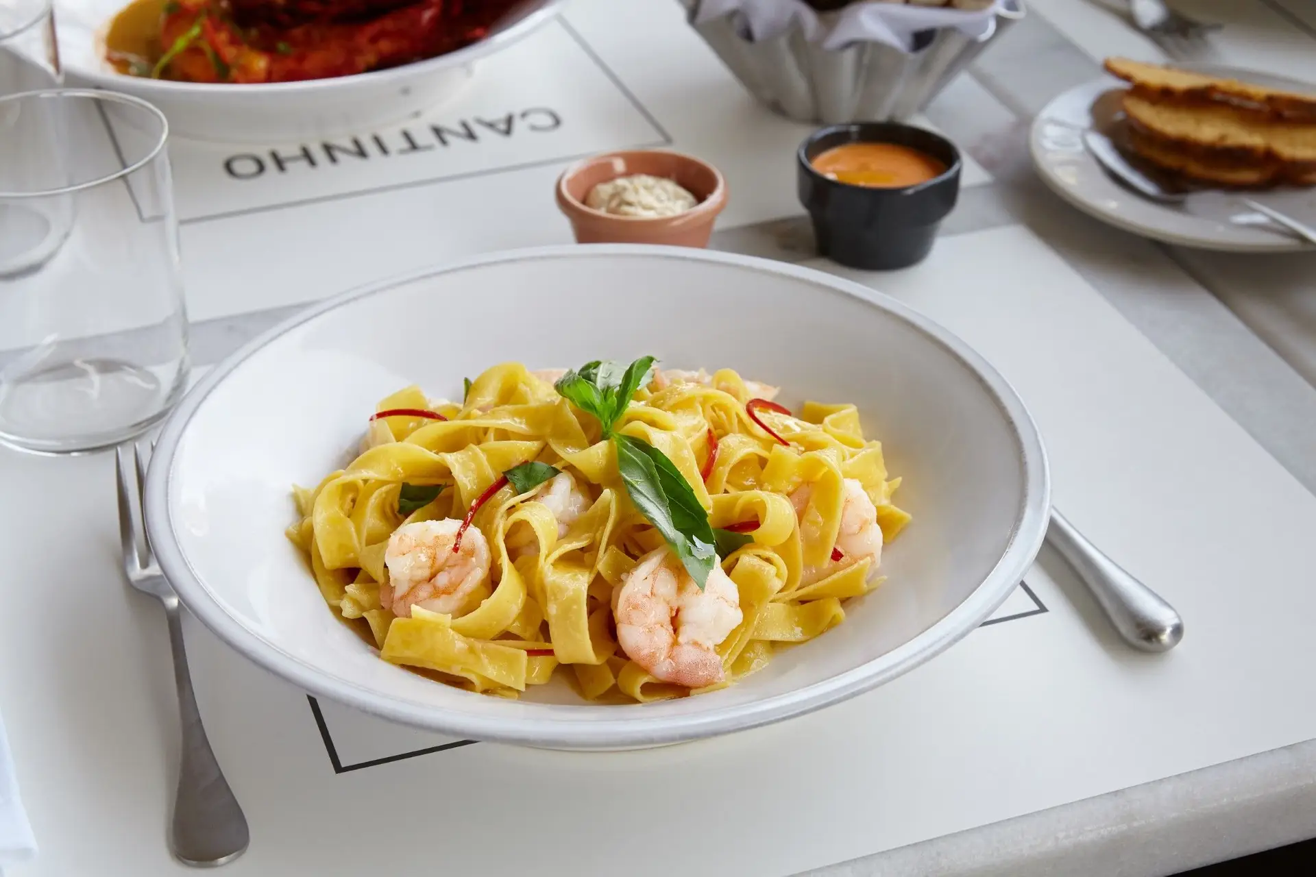 Os pratos principais do Cantinho do Avillez são as Lascas de bacalhau, migas soltas, ovo BT e azeitonas explosivas (€18,25), os Carabineiros do Algarve com molho Thai (€39,50), o Risotto de cogumelos portobello (€17,95) e o Porco Alentejano, batata frita, farofa e feijão preto (€19). Há também uma carta de “Petiscos e Pequenas Entradas” com propostas como a Copita de porco alentejano (€6), as Vieiras marinadas (€8,45) o Atum de conserva caseira com gengibre e lima (€7,75) e as Empadinhas de perdiz (€5), entre outras propostas.