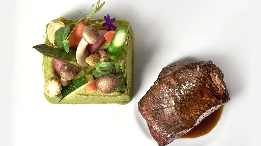 O menu de degustação (€45), é perfeito para se ter uma ideia global dos pratos criados pelo chefe Diogo Pimentel. Inclui Creme de tomate com escalfado de ovo e chips de presunto alentejano; Bulhão Pato de cogumelos; polvo na brasa com batatinha num lagareiro de alho, alecrim e molho de pimentos assados; Secretos de porco ibérico grelhados com molho de ameixa num carolino de feijão e chouriço transmontano; e, ainda, Pudim Abade de Priscos, limão e seu crocante de presunto.