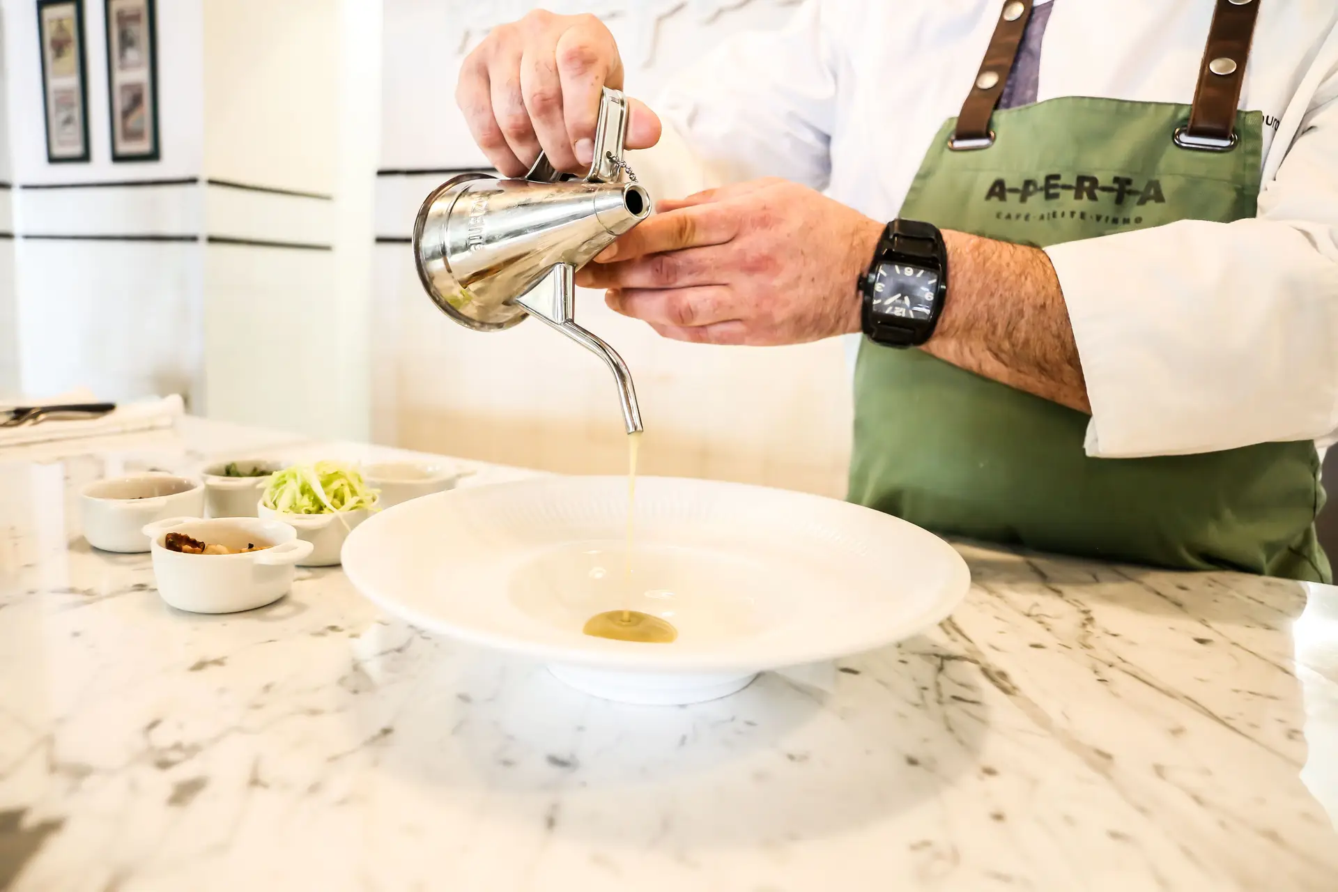 “Aperta a azeitona e terás o azeite; aperta a uva e farás vinho; aperta o grão e solta o sentir da tradição; Num campo de terra com tanta gente; E a vontade Maior de quem faz um caminho; Num abraço apertado de quem sente a paixão”, declama, inspirado, Henrique Mouro, que apresenta no novo Aperta, uma ementa entre a tradição e a inovação, com base nos produtos locais e sazonais.