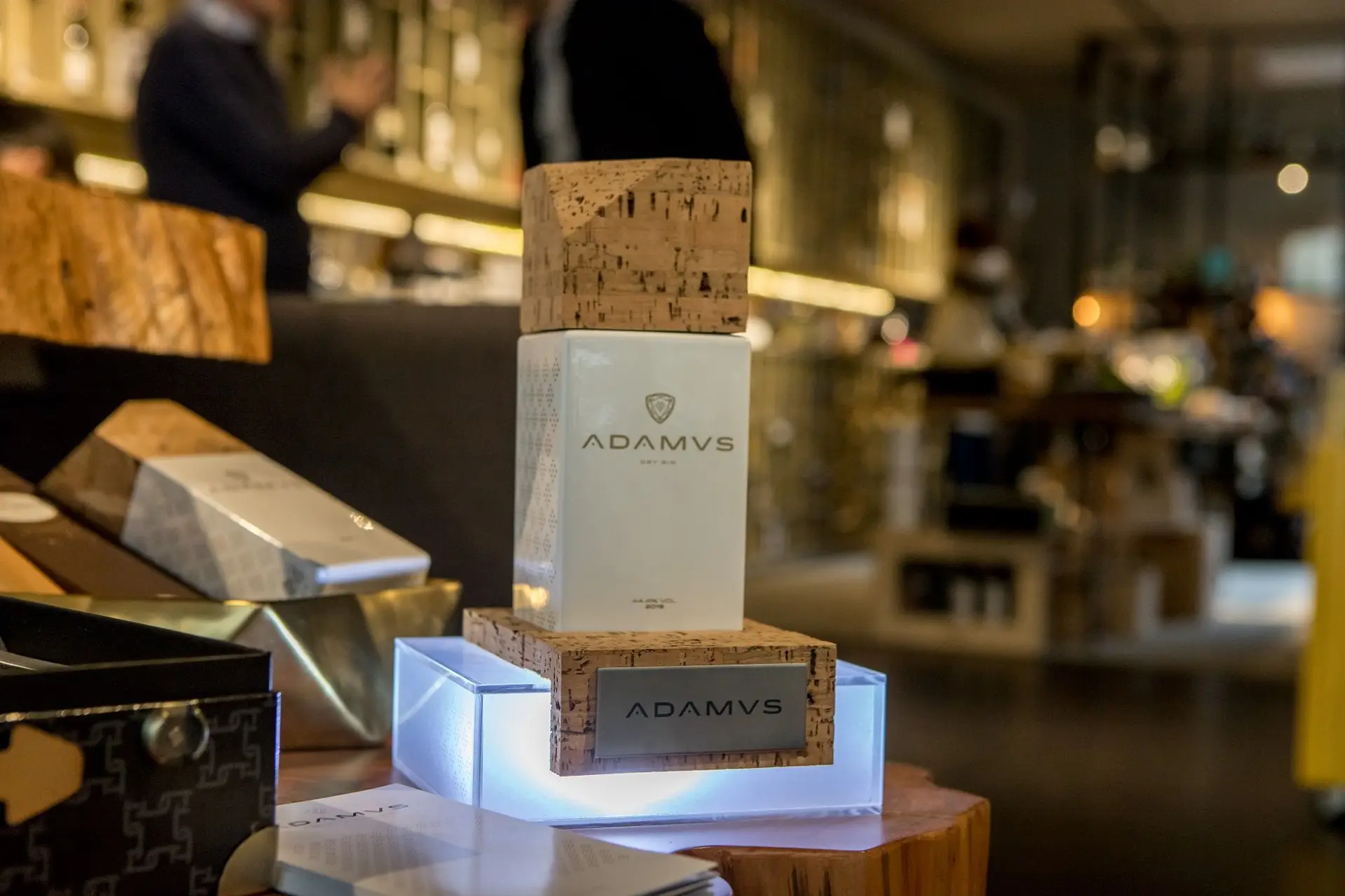 Apaixona ao primeiro olhar e impressiona até os mais exigentes críticos pela qualidade e pela sua intensa alma colocada em cada garrafa. O Adamus Dry Gin é mundialmente conhecido pelo design diferenciador e inovador, com cada garrafa delicadamente projetada e decorada como um diamante, utilizando ainda a cortiça como parte integrante da imagem por ser um produto nobre, natural e símbolo nacional. O corte da rolha simula a lapidação de um diamante, e quer transmitir o cuidado, o carinho e o rigor que é posto na criação de cada garrafa.